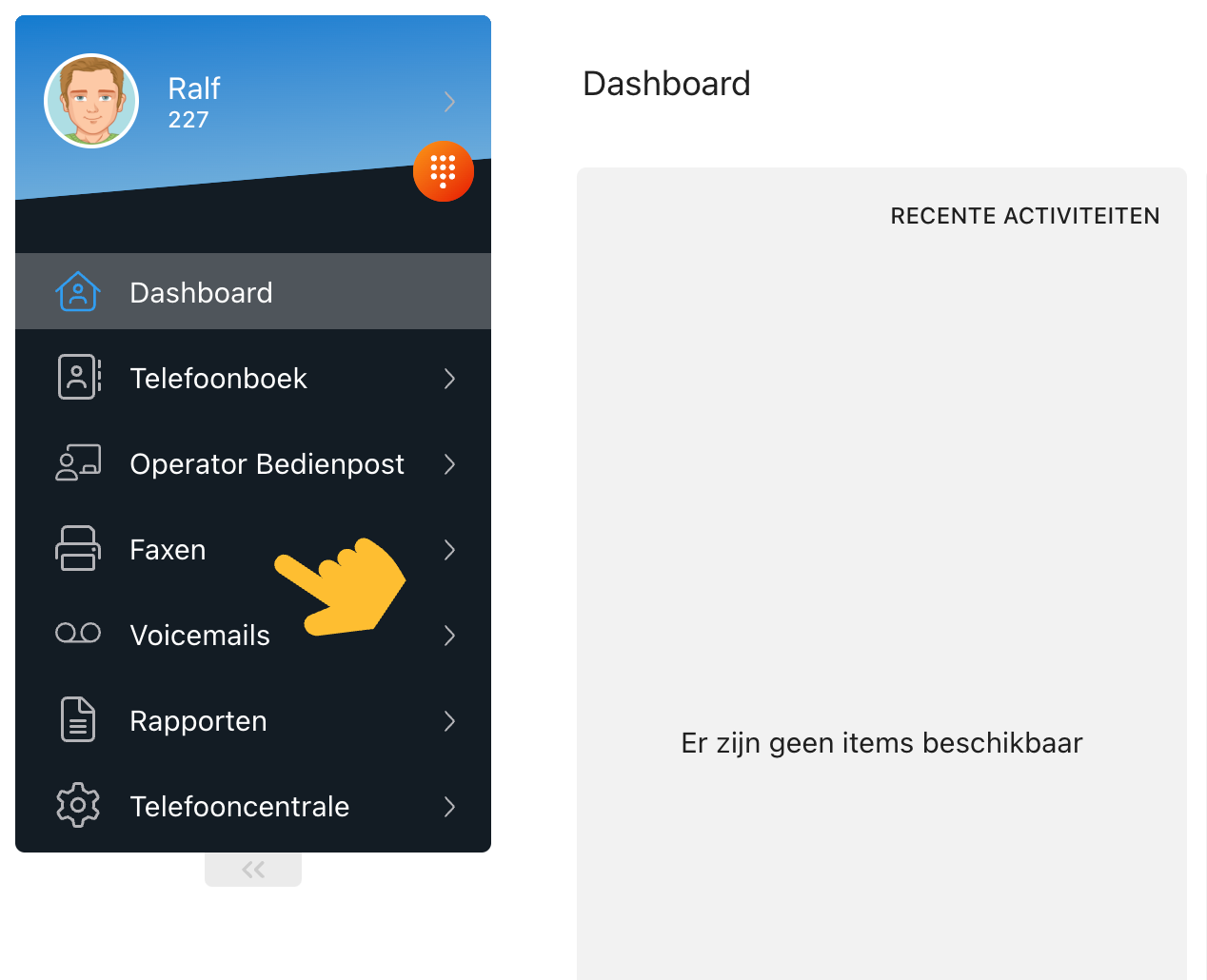 In het menu aan de linkerkant staat dan 'Faxen'.