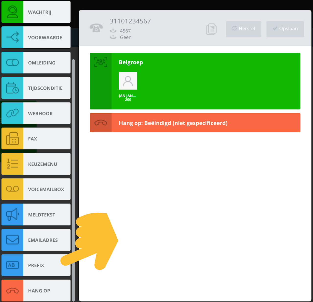 Dan kun je een prefix instellen zodat je toestel het volgende weergeeft: