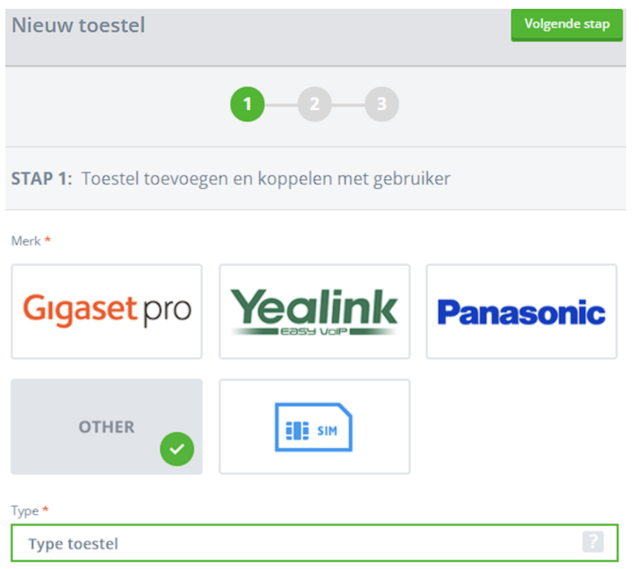 Kies bij merk Other en geef het merk en type op. Klik vervolgens op volgende.