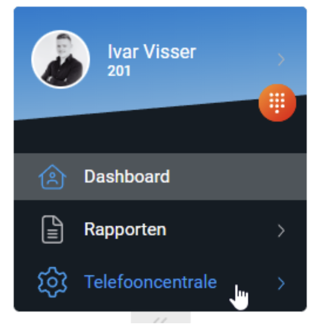 Na het inloggen komt u automatisch op het UC panel terecht. Klik vervolgens aan de linkerzijde op "Telefooncentrale".