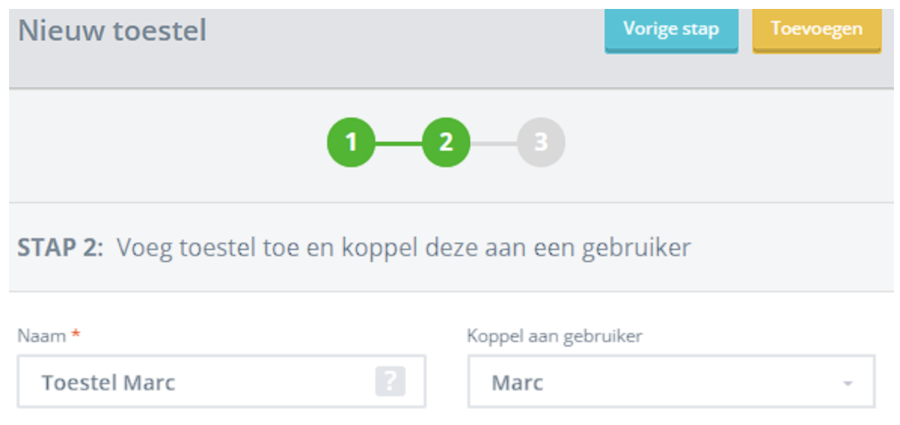Geef het toestel een naam, koppel het toestel aan je gebruiker en klik op Toevoegen.
