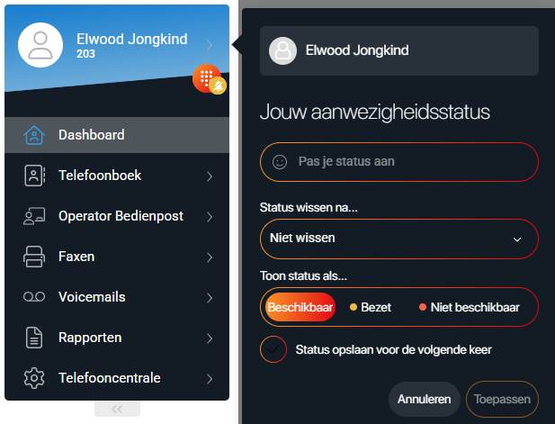 • Het instellen van je UC/Qaller BLF-status op Inactief, Bezig of Niet beschikbaar