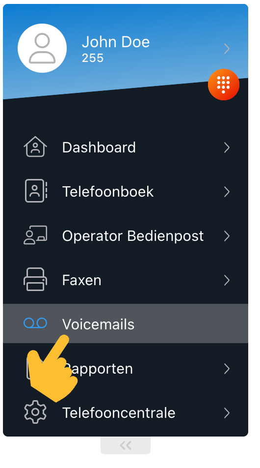 Als je een persoonlijke voicemail hebt, verschijnen je ingesproken berichten hier. Zie je deze optie niet, dan betekent dit dat je persoonlijke voicemail nog niet is geactiveerd of dat je geen rechten hebt. Neem in dat geval contact op met je beheerder om toegang aan te vragen.