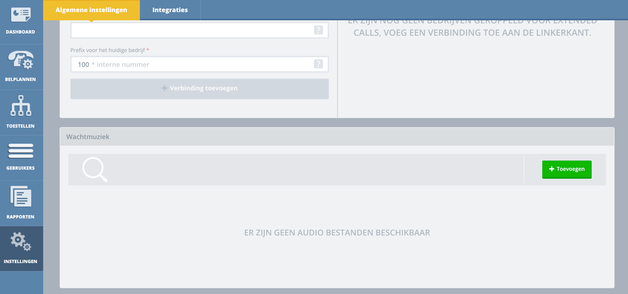 Je kunt de bedrijf brede wachtmuziek instellen via de algemene instellingen van je bedrijfsportaal.