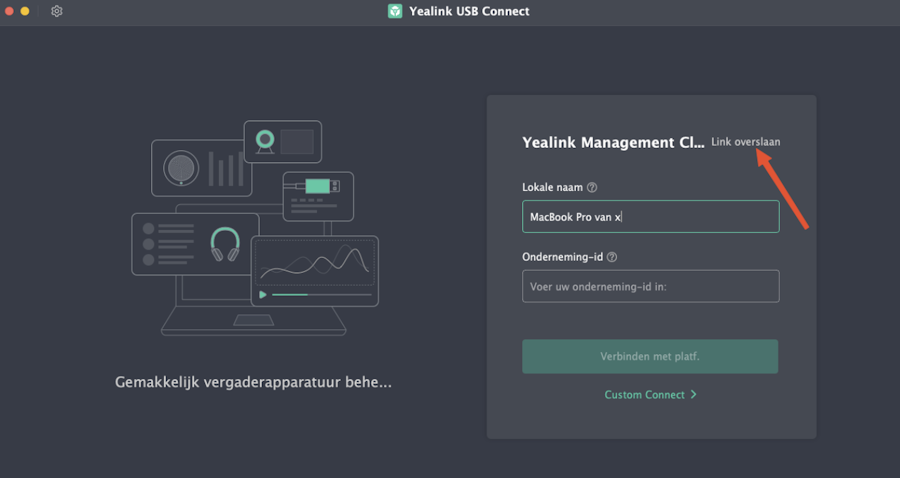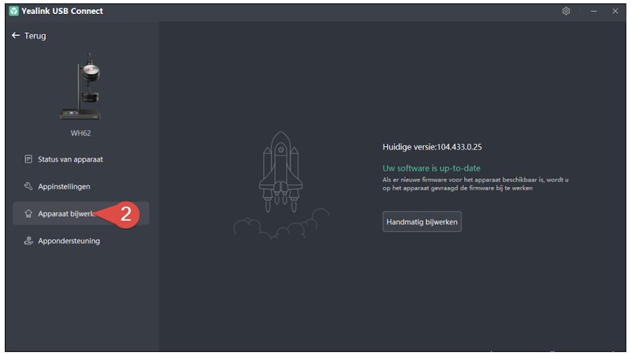 Om de headset te kunnen beheren dien je het volgende programma te downloaden en te installeren: https://www.yealink.com/en/product-detail/usb-connect-management. Na het openen van het programma kun je de eerste stap overslaan: