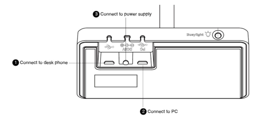 Om de headset te updaten of qua instellingen te wijzigen, dien je de headset via de PC aansluiting aan te sluiten op je computer. Sluit de kabel aan op poort 2 op het basisstation en het andere uiteinde in de USB poort van je computer.