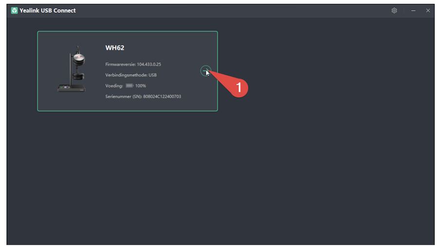 Klik in het "Yealink USB Connect" programma op de headset zoals in de foto staat aangegeven.